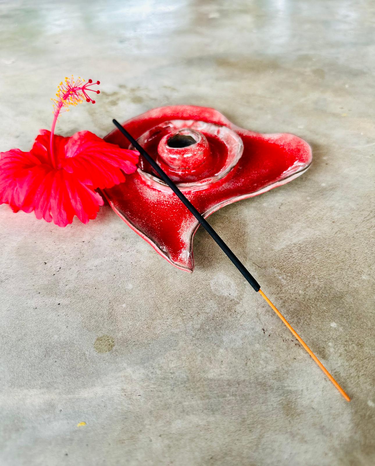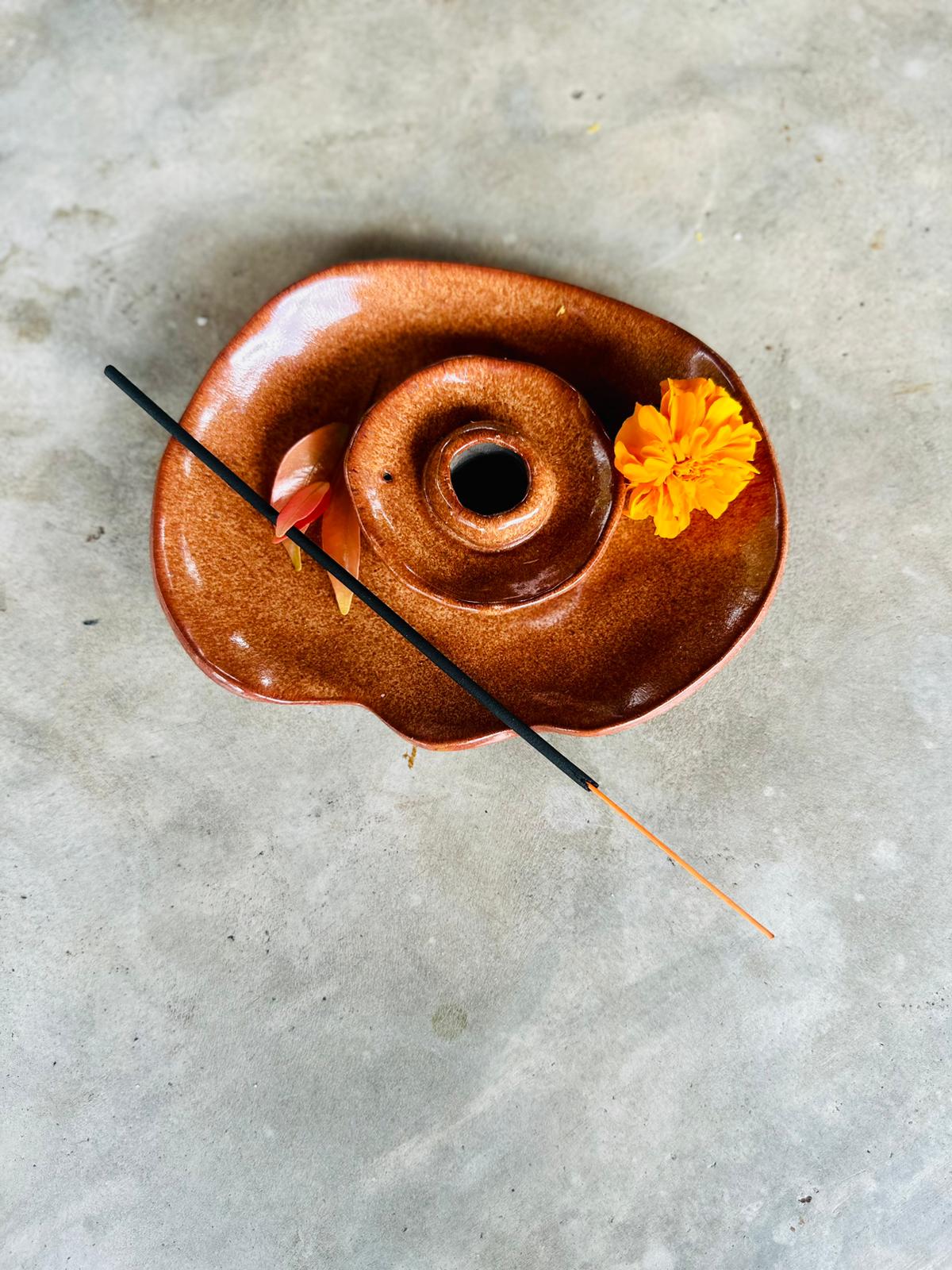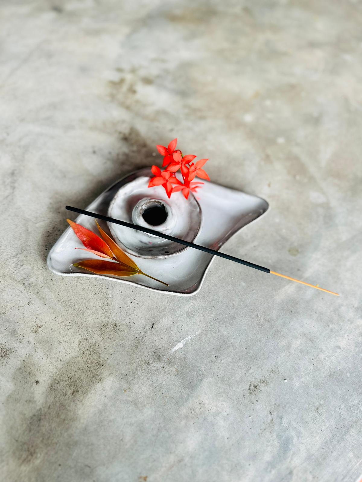 Wunderschöne, handgemachter 3-in-1 Räucher-und Kerzenhalter aus der künstlerischen Hand von unserer Keramikkünstlerin Kata. Einsetzbar für Palo Santo, Kerzen und Räucherstäbchen zugleich. Mit einem extra Loch und einer extra Auffangschale für ein Räucherstäbchen. Ritualgegenstände finden in seiner weiträumigen Schüssel Platz.