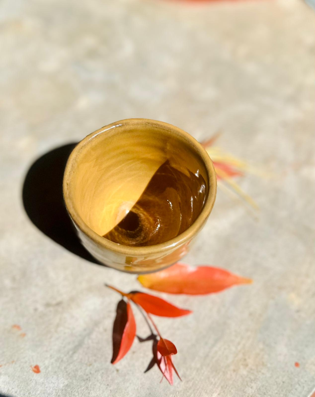 Wunderschöne, handgefertigte Ritual Nuna Mia Teetasse in sanften Orange-Sonnenuntergangstönen. Handgefertigt mit viel Liebe von unserer Keramikkünstlerin Kata. Klein aber Oho! Perfekte Größe für Rituale. Liegt geschmeidig in der Hand.